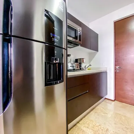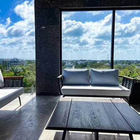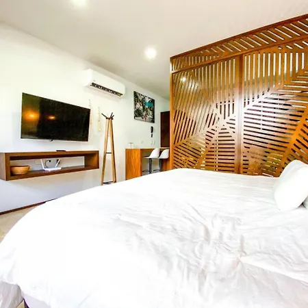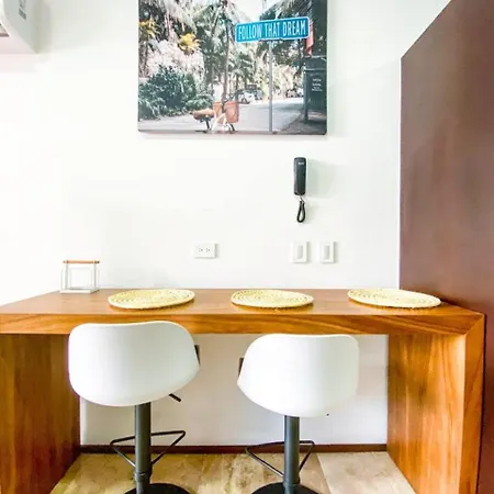 Modern Studio Downtown With Rooftop, Pool, Gym And Parking lägenhet erbjuder ett komplett kök samt rum med arbetsbord, flerkanals TV och luftkonditionering. Tulums mayanska ruiner ligger inom 7 km från lägenheten, medan Alumbra Mercado Orgánico ligger 4 km bort.